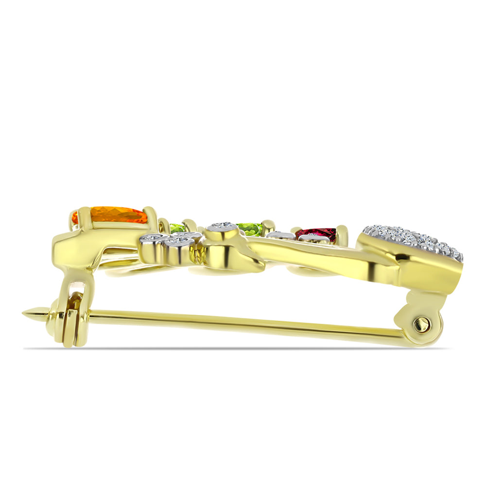Broşă din Argint 925 Placat cu Aur ( 4.39 grame ) cu Turmalină Chakra și Topaz Alb 1.26 Carate kod: Y59507 Mărimea bijuteriei: 26.20 mm x 22.70 mm