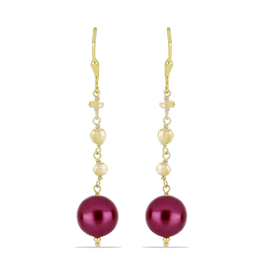 Cercei din Argint 925 Placat cu Aur ( 1.2 grame ) cu Perlă de cultură Violet și Citrin Ural 18.05 Carate
