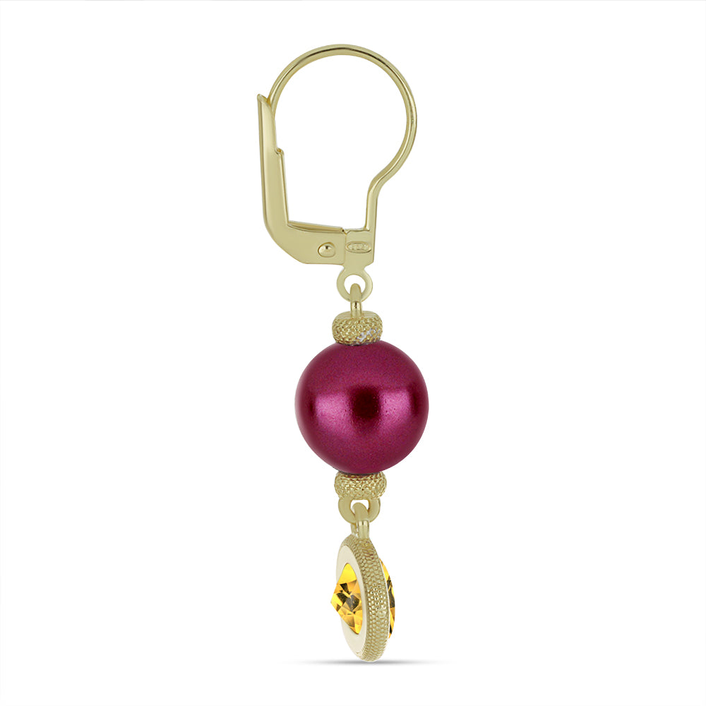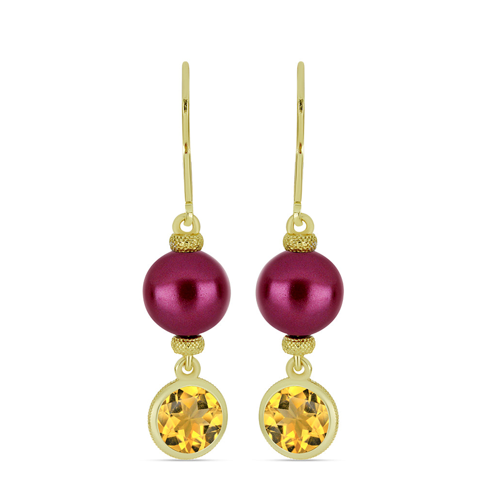 Cercei din Argint 925 Placat cu Aur ( 2.36 grame ) cu Perlă de cultură Violet și Citrin Ural 12.85 Carate