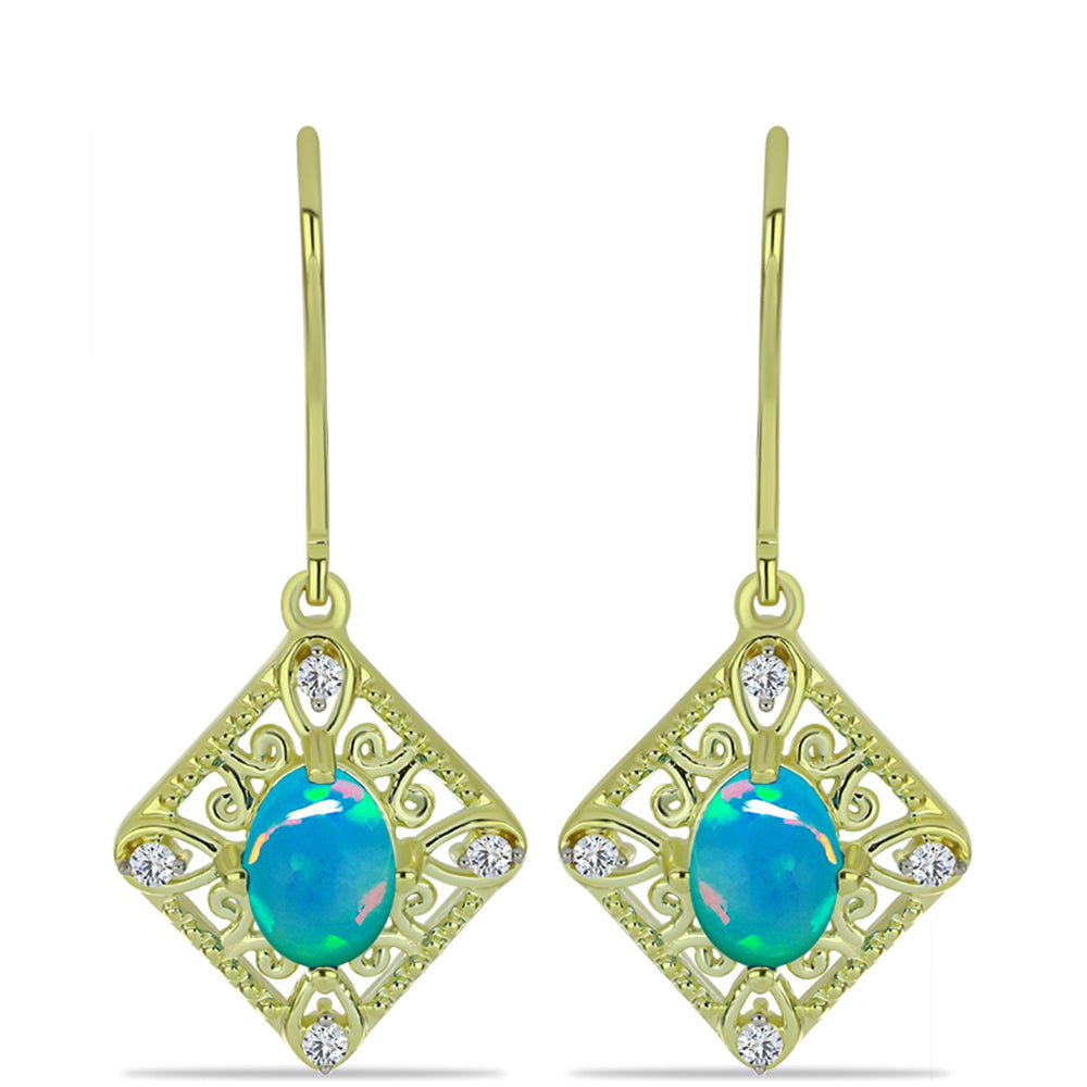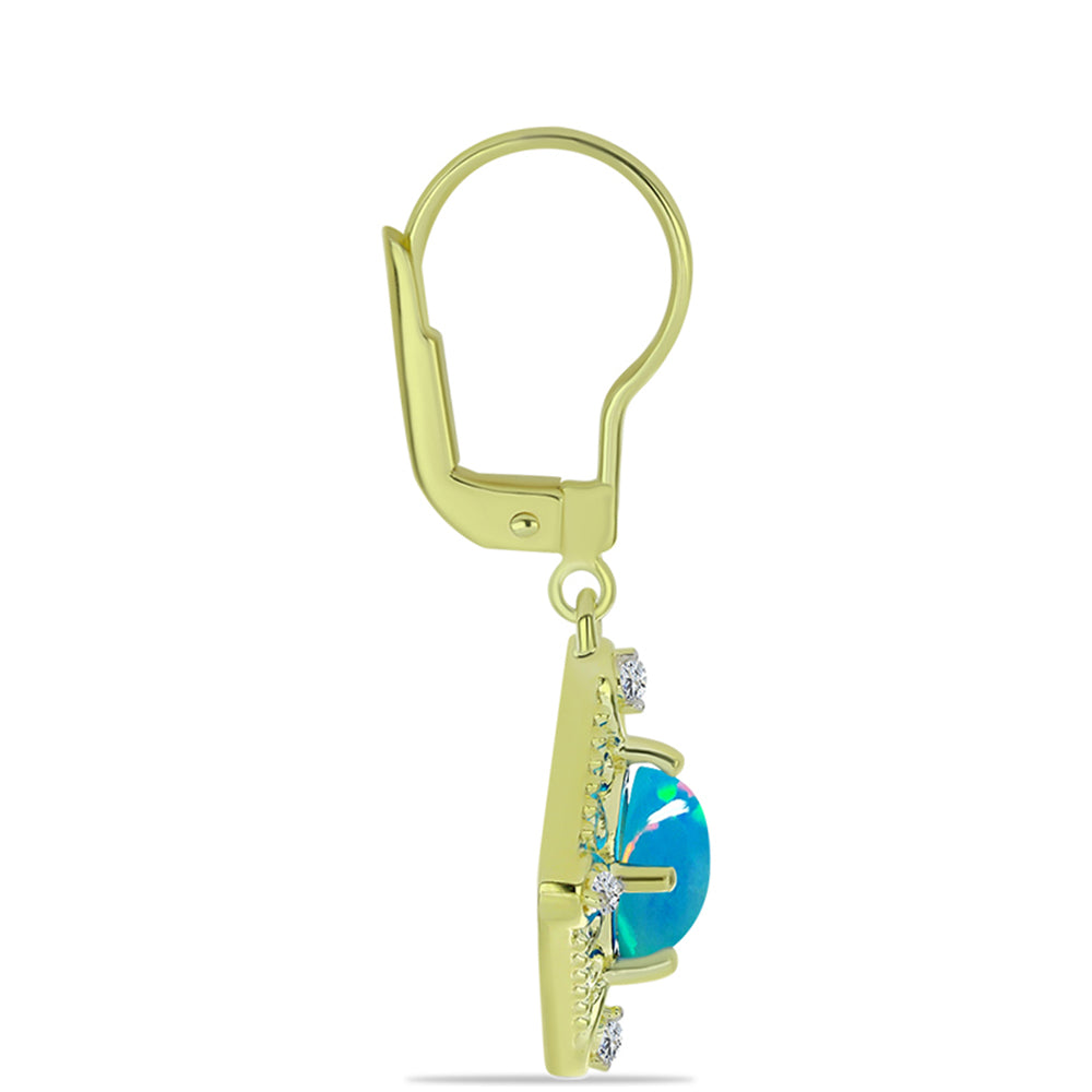 Cercei din Argint 925 Placat cu Aur ( 2.99 grame ) cu Opal Albastru Etiopian Paraiba și Topaz Alb 1.13 Carate