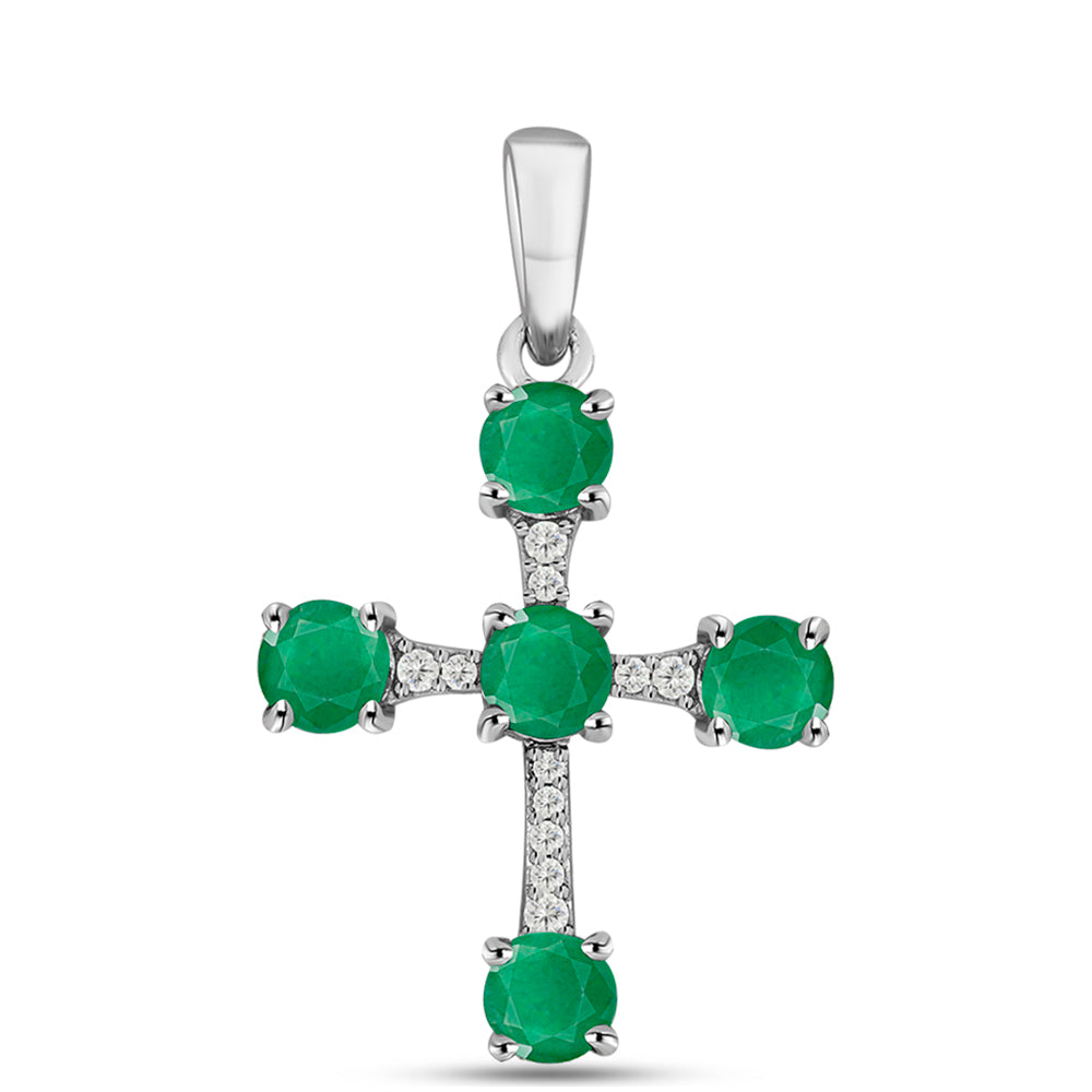 Cruce din Argint 925 ( 1.71 grame ) Pandantiv 1.35 Carate cu Smarald Brazilian și Topaz Alb kod: Y58061 Mărimea bijuteriei: 27.40 mm x 17.70 mm