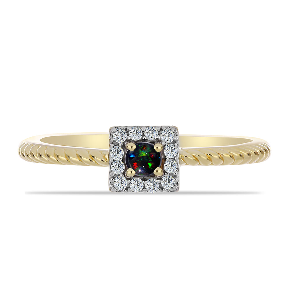 Inel din Argint 925 Placat cu Aur ( 2.25 grame ) cu Opal Etiopian Negru Lega Dembi și Topaz Alb 0.19 Carate kod: Y60003 Mărimea bijuteriei: 6.00 mm x 22.00 mm