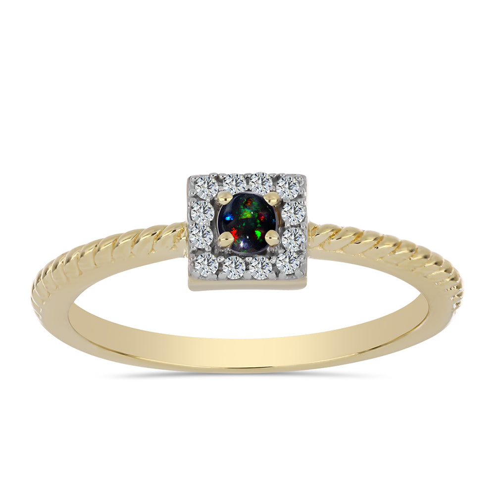 Inel din Argint 925 Placat cu Aur ( 2.25 grame ) cu Opal Etiopian Negru Lega Dembi și Topaz Alb 0.19 Carate