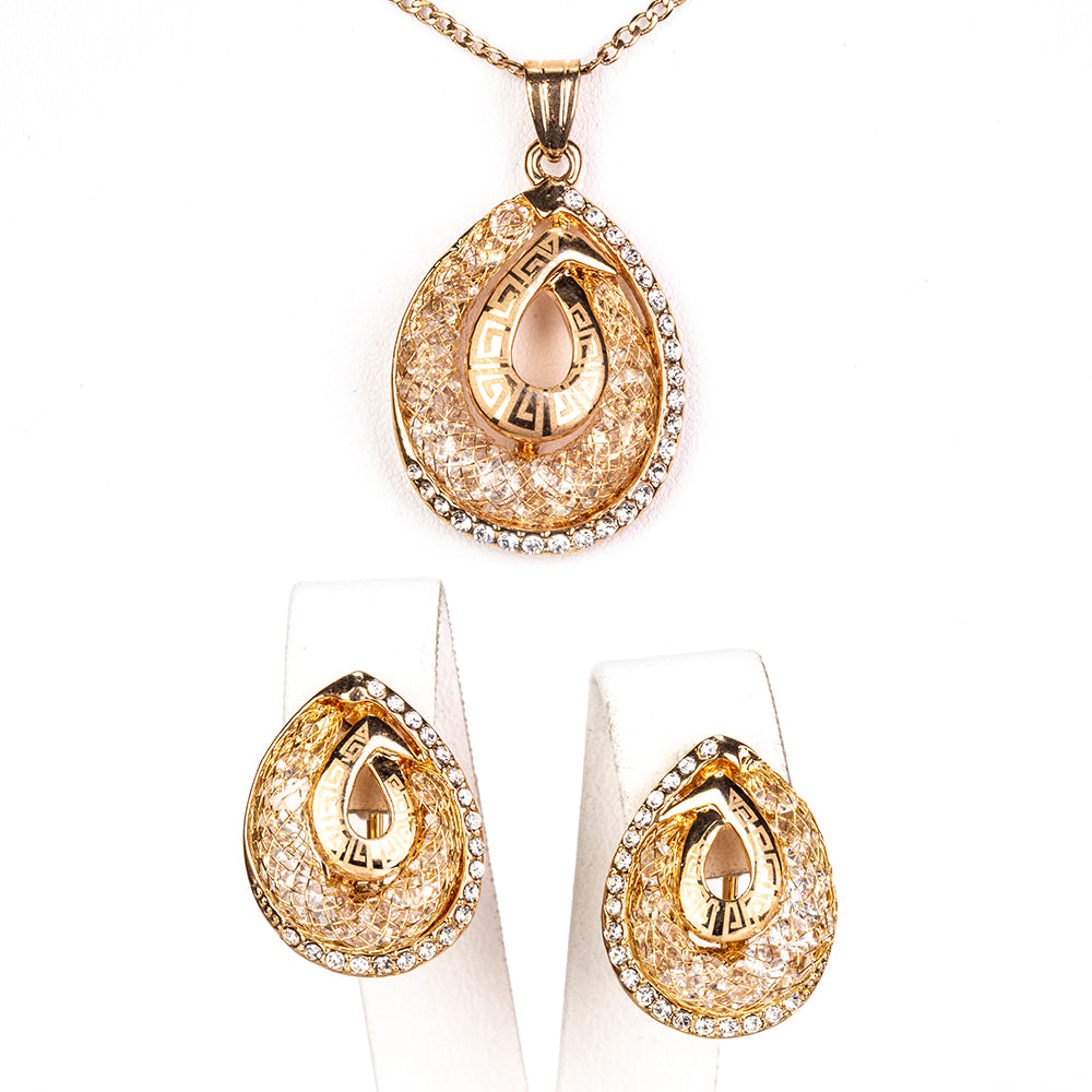 Set din Aliaj Placat cu Aur cu Cristal Alb Emporia® ( Colier+Cercei )